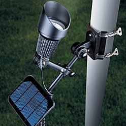 No wiring needed: this flagpole lighting is solar powered and easy to install. liberty Flagpole light features brights lEDs and large adjustable solar panel. This flagpole lighting fixture is ideal for in-ground flagpoles. Properly illuminate your American flag at night with the solar-powered Liberty Flagpole Light. Respect our flag by properly lighting it with flagpole lighting when the sun goes down. With this solar flagpole light, you won't have to worry about flipping a switch or adjusting a timer. The Liberty Flagpole Light will automatically come on at dusk and stay on for up to 12 hours. Made of die-cast aluminum with adjustable light head and rechargeable Ni-MH battery, this flagpole lighting mounts on any flagpole up to 3" in diameter. Hardware is also included to mount the flagpole lighting on a 1"Dia. residential flagpole. The Liberty Flagpole Light features rotating arm for easy positioning, and 60 lux output. Benefits of the Liberty Flagpole Light: Liberty Flagpole Light features brights LEDs and large adjustable solar panel Have questions about which solar light is right for your task? Check out our article on How to Choose Outdoor Solar Lighting.