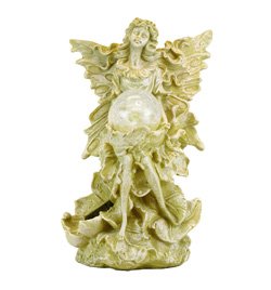 This beautiful angel outdoor garden or porch statue features a set of solar powered color changing LED lights inside the crackled clear plastic ball the angel is holding in her hands. The light turns on automatically in dark conditions, changing from red to blue to green, and lasts up to 10 hours under a full charge. Made of cold cast resin, the statue measures 12 1/4 inches tall, 7 1/2 inches wide and 5 1/2 inches deep. It's hand-painted to give it an antiqued, distressed look, and shows great detail.This statue makes a wonderful gift for any angel lover.