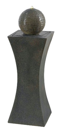 Balanced atop a contemporary monolith, sculpted and tailored, sits Cannonade's sparkling orb. Lighted water that simmers down the ribbed surface bubbles from the top. Solar powered with a remote on/off switch, Cannonade can be placed freely without the need for electric outlets.