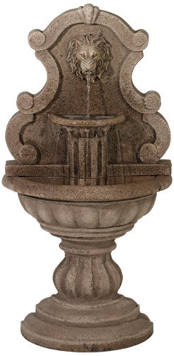 This classically styled fountain features a lion's head and a two tiered design. Water cascades gently from one level to the next from five spouts, creating a pleasant look and sound. This beautiful design is crafted from reconstituted granite for a great look. A cavity in the back enables access to the included pump and connecting hose.